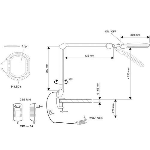 | Nazwa produktu | Lampa laboratoryjna LED Maul ze szkłem powiększającym, 17 W |