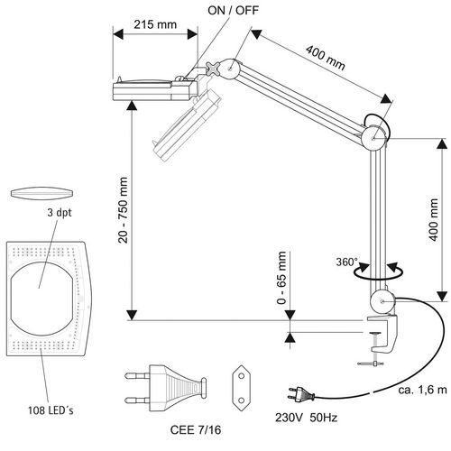 | Nazwa produktu | Lampa laboratoryjna Maul z kwadratową lupą, 7 W |