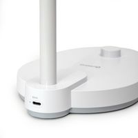Lampa Luna o nowoczesnej białej konstrukcji świetnie sprawdzi się zarówno na stole roboczym, jak i w sypialni czy w salonie.