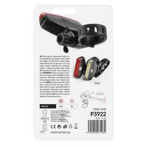 | Nazwa produktu | Lampka LED przednia + tylna na rower P3922, 22 lm |