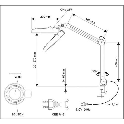 | Nazwa produktu | Lampka LED z lupą na biurko MAULviso, 6W, mocowana zaciskiem, czarna |