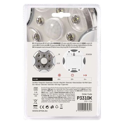 Lampka nocna LED P3310K z czujnikiem ruchu, 3 x AA