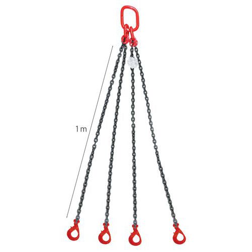 Łańcuch mocujący z uchem i czterema hakami wyposażonymi w zabezpieczenie, do 2 360 kg
