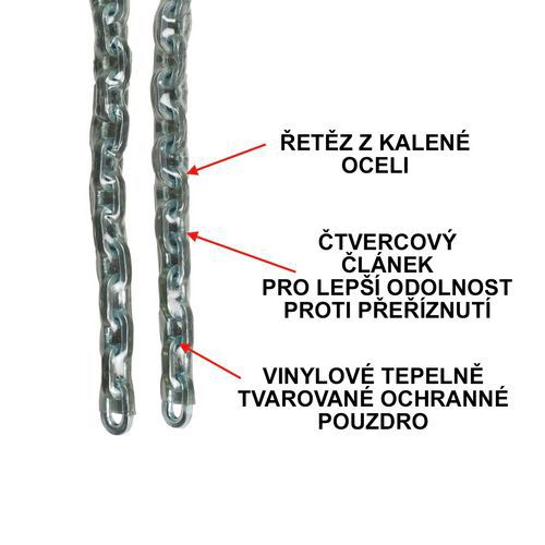 - Przezroczysta osłona winylowa chroni łańcuch przed korozją i uszkodzeniami mechanicznymi.
