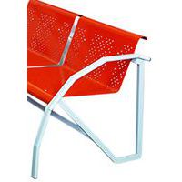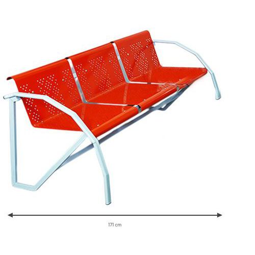 Ławy trzyosobowe przeznaczone m.in. do poczekalni. Metalowa konstrukcja, z powierzchnią wykończoną lakierem epoksydowym w kolorze aluminium. Zakrzywiona konstrukcja po bokach pełni funkcję podłokietników. Metalowe siedziska z blachy perforowanej w różnych kolorach. Gwarancja producenta dla klienta : 10 lat