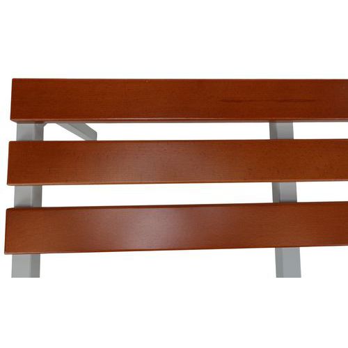Ławki pod metalowe szafki szatniowe, wykonane z profili stalowych, z siedziskiem z drewna bukowego. Powierzchnia wykończona epoksydem.