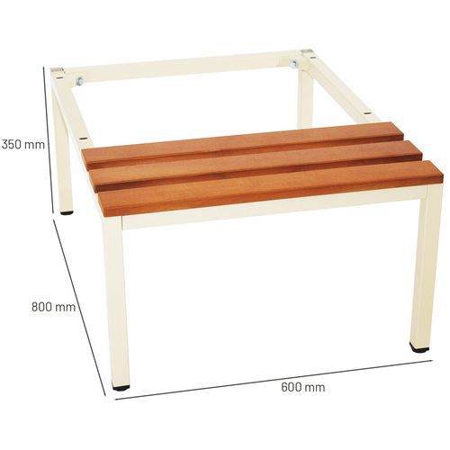 Ławki z konstrukcją stalową i siedziskiem drewnianym są umieszczane pod metalowe szafy do szatni. materiał: drewno / metal wymiary wys. x sz. x gł.: 35 x 88,5 x 80 cm szerokość siedziska: 30 cm kolor: szary RAL 7035, beżowy RAL 1015