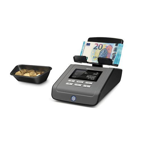 - Liczy banknoty złożone luzem i pakowane, a także monety.
