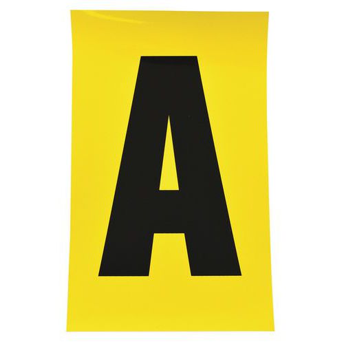 Czarne litery na żółtym tle wykonane z winylu, dostępne są w ośmiu różnych rozmiarach. Dwadzieścia sześć liter od A do Z bez znaków diakrytycznych, wszystkie są dobrze widoczne i odznaczają się łatwością zastosowania. Po ściągnięciu nie pozostawiają śladów. Można je wykorzystać w biurze, magazynie oraz zakładach produkcyjnych. Opakowanie zawiera 26 arkuszy, każdy z liczbą etykiet zależną od ich rozmiarów. typ mocowania: samoprzylepny kolor: żółty materiał: tworzywo sztuczne liczba etykiet na arkusz: 1 - 168 opakowanie: 26 arkuszy