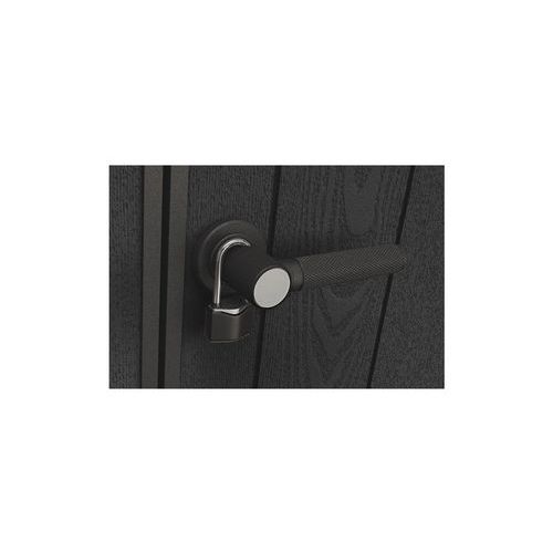 Wytrzymały dach, szerokie podwójne drzwi i podłoga dostosowana do intensywnego użytku, o nośności 150 kg na m2.