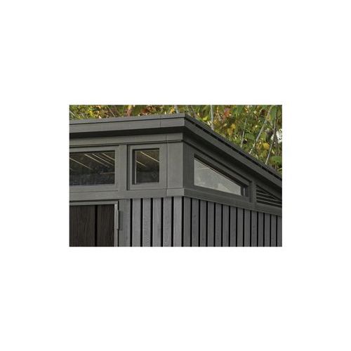 Niewymagający konserwacji plastikowy magazynek ogrodowy Vertical wykonany z wyjątkowego materiału Decocoat, stylizowanego na drewno o nowoczesnym wyglądzie.