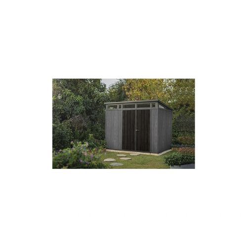 Niewymagający konserwacji plastikowy magazynek ogrodowy Vertical wykonany z wyjątkowego materiału Decocoat, stylizowanego na drewno o nowoczesnym wyglądzie.