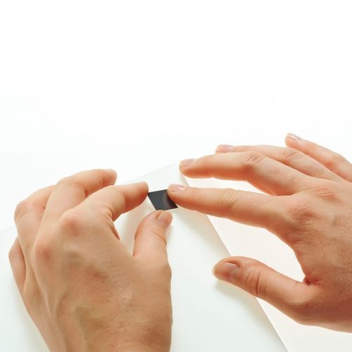 - Naklejenie na odwrocie papieru, kartonu itp. umożliwia stworzenie magnetycznego obiektu samoprzylepnego.