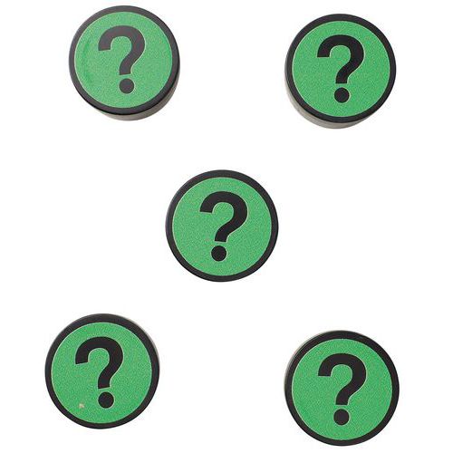 - Okrągłe magnesy do mocowania dokumentów na metalowych powierzchniach. Jasne kolory ze znakiem zapytania dodadzą zabawnego akcentu Twoim tablicom.
