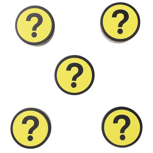 - Okrągłe magnesy do mocowania dokumentów na metalowych powierzchniach. Jasne kolory ze znakiem zapytania dodadzą zabawnego akcentu Twoim tablicom.