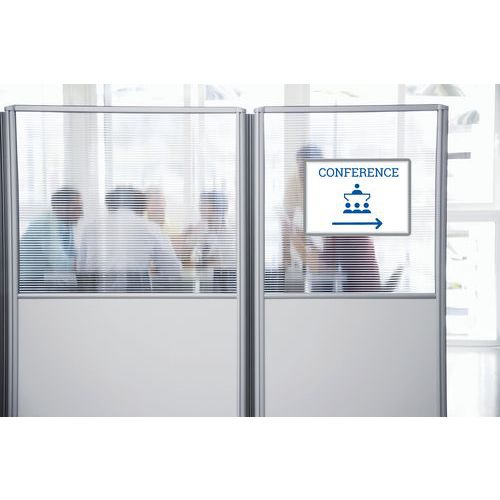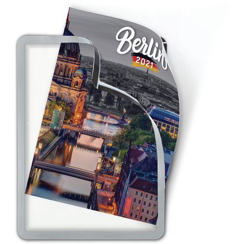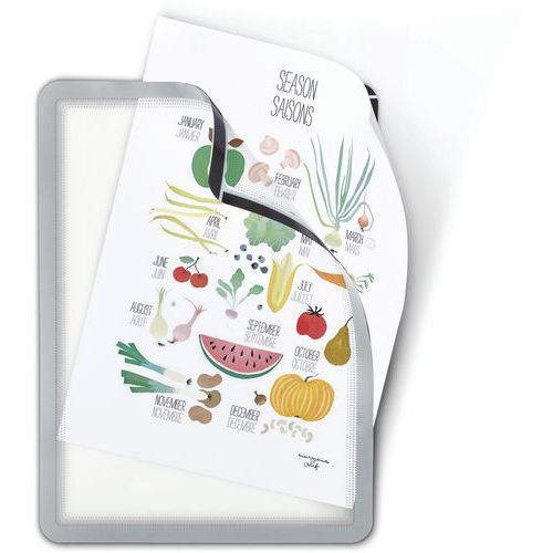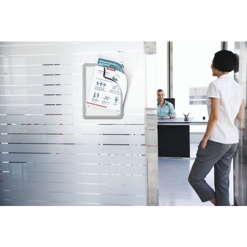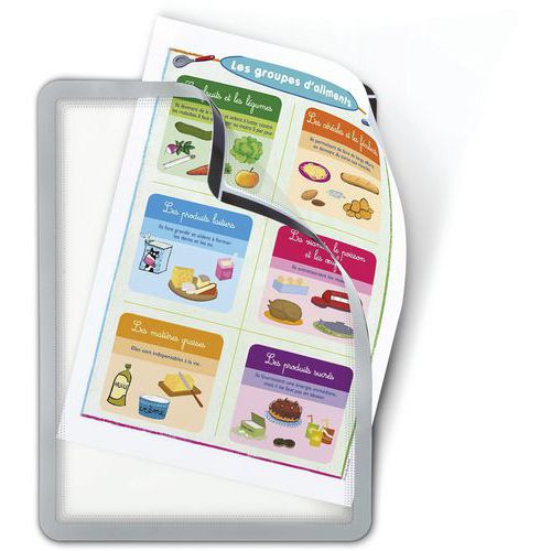 Magnetyczna ramka z kieszonką o ziarnistej powierzchni antyrefleksyjnej zapewniającej lepszą czytelność.