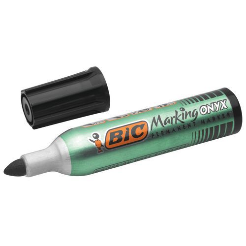 - Niezmywalny marker BIC Marking Onyx 1482 jest łatwy do odczytania na większości powierzchni: szkle, drewnie, plastiku, metalu, kartonie.