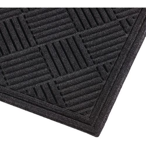 Wytrzymała mata wejściowa z opatentowaną konstrukcją Aqua Dam z 4 pokrytymi tkaniną wzmocnionymi krawędziami dywanu działającymi jako taca retencyjna zatrzymująca do 4 litrów wody na metr kwadratowy. Tekstylna powierzchnia formowana wtryskowo na opatentowanej, bezkierunkowo rowkowanej, diamentowej końcówce ma podwójny efekt skrobania i wycierania brudu. Wytrzymała gumowa podeszwa zapewnia maksymalną odporność. Szpilki pod podeszwą minimalizują ruch maty na wszystkich powierzchniach i podnoszą matę, aby umożliwić wysychanie wilgotnych podłóg, nawet pod matą.