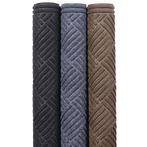Wytrzymała mata wejściowa z opatentowaną konstrukcją Aqua Dam z 4 pokrytymi tkaniną wzmocnionymi krawędziami dywanu działającymi jako taca retencyjna zatrzymująca do 4 litrów wody na metr kwadratowy. Tekstylna powierzchnia formowana wtryskowo na opatentowanej, bezkierunkowo rowkowanej, diamentowej końcówce ma podwójny efekt skrobania i wycierania brudu. Wytrzymała gumowa podeszwa zapewnia maksymalną odporność. Szpilki pod podeszwą minimalizują ruch maty na wszystkich powierzchniach i podnoszą matę, aby umożliwić wysychanie wilgotnych podłóg, nawet pod matą.