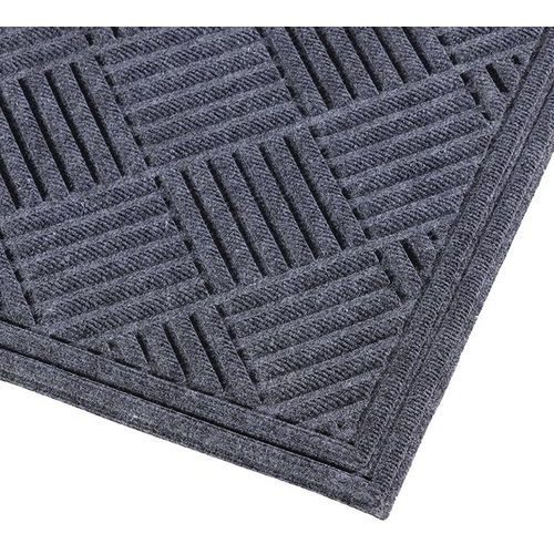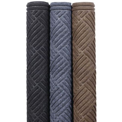 Wytrzymała mata wejściowa z opatentowaną konstrukcją Aqua Dam z 4 pokrytymi tkaniną wzmocnionymi krawędziami dywanu działającymi jako taca retencyjna zatrzymująca do 4 litrów wody na metr kwadratowy. Tekstylna powierzchnia formowana wtryskowo na opatentowanej, bezkierunkowo rowkowanej, diamentowej końcówce ma podwójny efekt skrobania i wycierania brudu. Wytrzymała gumowa podeszwa zapewnia maksymalną odporność. Szpilki pod podeszwą minimalizują ruch maty na wszystkich powierzchniach i podnoszą matę, aby umożliwić wysychanie wilgotnych podłóg, nawet pod matą.