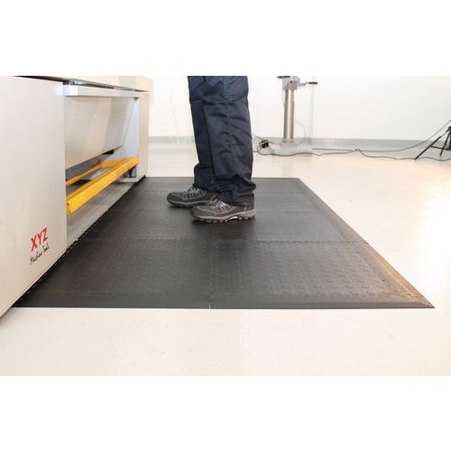 Przemysłowe maty przeciwzmęczeniowe do środowiska suchego, składają się z płytek, których połączenie pozwala na dostosowanie wielkości maty do wymiarów pomieszczenia.