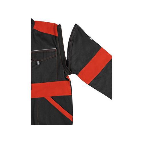 Czarna męska bluza robocza z pomarańczowymi dodatkami. Kieszenie na piersi i przednie zmieszczą telefon, miarę i inne drobne przedmioty niezbędne do pracy. Wygodę noszenia zapewnia guma ściągająca w pasie oraz rękawy zakończone twardym mankietem. Po odpięciu rękawów bluzę można szybko zmienić w kamizelkę. Kryte zapięcia na zamek błyskawiczny oraz zapięcie przy szyi. EN ISO 13688: Ta międzynarodowa norma określa ogólne wymagania dotyczące wykonania odzieży ochronnej pod względem ergonomii, stanu, oznaczenia rozmiarów, trwałości, kompatybilności oraz informacji dostarczanych przez producenta.