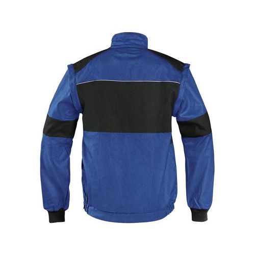 Niebieska męska bluza robocza z czarnymi dodatkami. Kieszenie na piersi i przednie zmieszczą telefon, miarę i inne drobne przedmioty niezbędne do pracy. Wygodę noszenia zapewnia guma ściągająca w pasie oraz rękawy zakończone twardym mankietem. Po odpięciu rękawów bluzę można szybko zmienić w kamizelkę. Kryte zapięcia na zamek błyskawiczny oraz zapięcie przy szyi. EN ISO 13688: Ta międzynarodowa norma określa ogólne wymagania dotyczące wykonania odzieży ochronnej pod względem ergonomii, stanu, oznaczenia rozmiarów, trwałości, kompatybilności oraz informacji dostarczanych przez producenta.