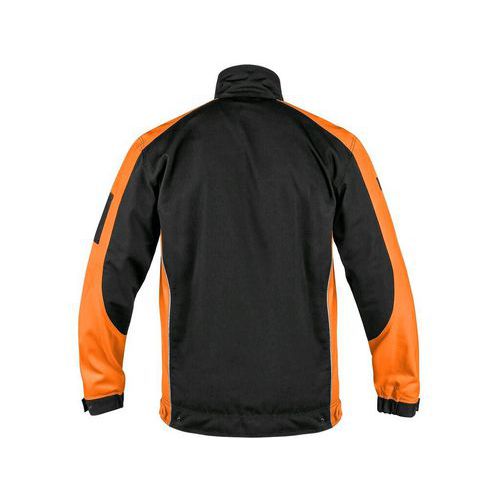 Czarno-pomarańczowa bluza monterska z elementami odblaskowymi. Duże kieszenie na piersi z mniejszą kieszonką na telefon, kieszonką zapinaną na zamek błyskawiczny, z praktyczną plastikową zawieszką pomieszczą różne przedmioty niezbędne do pracy. Kieszenie boczne zapinane na zamek błyskawiczny, co zapobiega ich przypadkowemu wypadnięciu. Rękawy zakończone regulowanym mankietem. Kryte zapięcie na szyi — na zamek błyskawiczny i zatrzaski. Materiał poliester 65%, bawełna 35% Norma EN 340 definiuje ogólne wymagania związane z produkcją odzieży ochronnej uwzględniającą ergonomię, niezawodność, rozmiar, starzenie materiału, kompatybilność, oznaczenia ochronne oraz informacje dostarczane przez producenta wraz z wykonanym produktem.