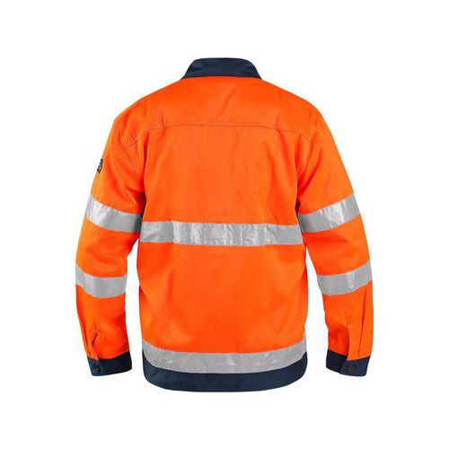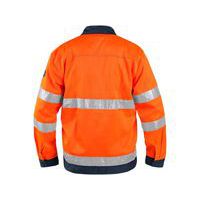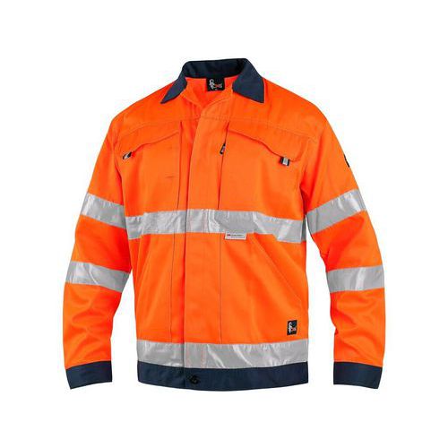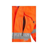 Pomarańczowa odblaskowa bluza robocza, zapewniająca wysoką widoczność za dnia i w nocy. Kieszenie na piersi z mniejszą kieszonką na telefon i kieszenie przednie pomieszczą drobne przedmioty niezbędne do pracy. Kryte zapięcie na zamek błyskawiczny oraz rękawy do mankietu. Wysokiej jakości pasy odblaskowe 3M w pasie i na rękawach.