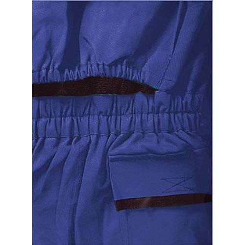 Komfort noszenia zapewnia elastyczna część lędźwiowa, możliwość spięcia pasa klamrą i zakończenia rękawów i nogawek do mankietu.