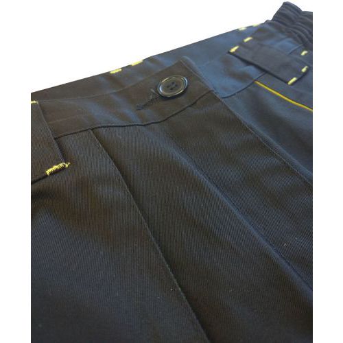 Męskie spodnie robocze o uniwersalnym zastosowaniu w przemyśle, budownictwie lub w warsztatach domowych. Duże kieszenie przednie, boczne i tylne do przechowywania potrzebnych przyborów roboczych. Elastyczny pas ze szlufkami na pasek zapewnia wygodę noszenia, zapięcie na zamek błyskawiczny i guzik. Wzmocniona część kolanowa, potrójne przeszycie na nogawkach. Spełniają wymagania normy OEKO-TEX® Standard 100. OEKO-TEX® Standard 100 to międzynarodowy system testowo-certyfikacyjny dla tekstyliów, wykonywanych wyłącznie z materiałów bezpiecznych dla zdrowia.