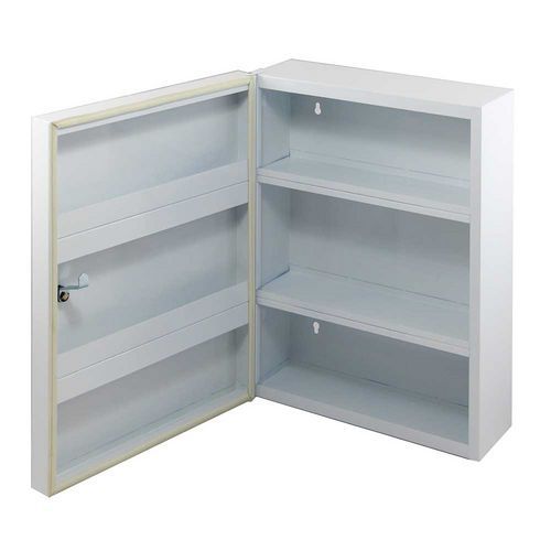 Metalowa apteczka ścienna, zamykana na klucz, 45 x 35 x 15 cm, z wkładem BIURO