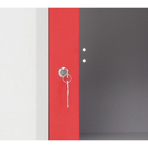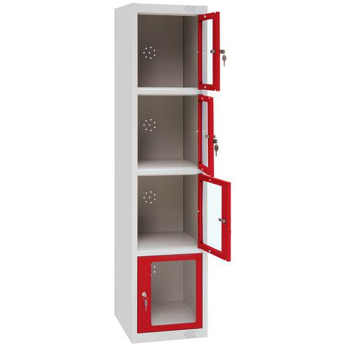 Metalowa szafa szatniowa Manutan Expert Jenny, 4 boksy z okienkiem, czerwona Metalowa szafa szatniowa Manutan Expert Jenny, 4 boksy z okienkiem, czerwona