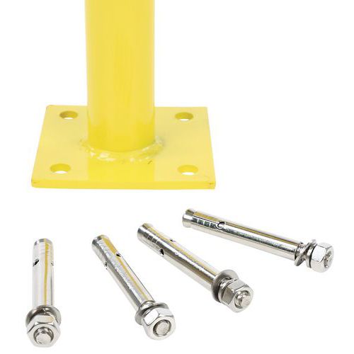 Barierki zabezpieczające metalowe, w czterech wariantach kolorystycznych. Nadają się do odgradzania przestrzeni, parkingów i obiektów w warsztatach. Konstrukcja z rury stalowej. Mocowanie przez wkręcenie kwadratowej podstawy. Wykończenie powierzchni zapewnia ochronę przed korozją i czynnikami zewnętrznymi (test w mgle solnej).