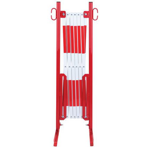 - Składane stalowe barierki z nóżkami po 2 stronach do okresowego zamykania niebezpiecznych przestrzeni.