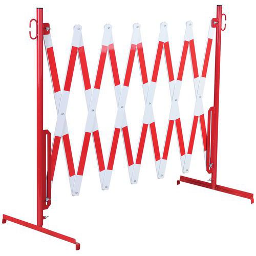 - Składane stalowe barierki z nóżkami po 2 stronach do okresowego zamykania niebezpiecznych przestrzeni.
