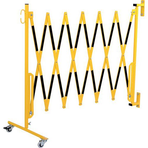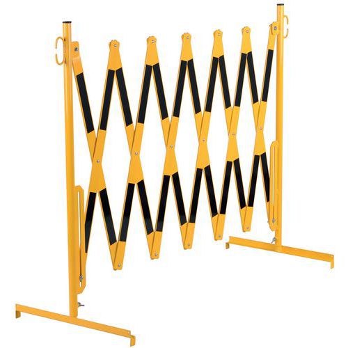 - Składane stalowe barierki z nóżkami po 2 stronach do okresowego zamykania niebezpiecznych przestrzeni.