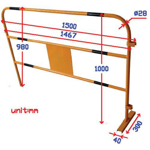 Stalowe poręcze przenośne, w dwóch wariantach kolorystycznych. Posiadają przyspawaną płytę pomiędzy poprzeczkami.