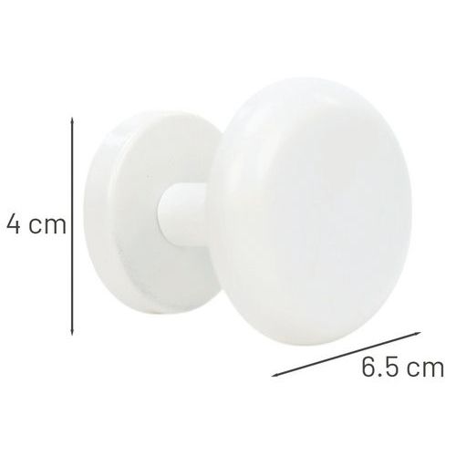Haczyki łazienkowe stalowe w kolorze białym. Dobra odporność na wilgoć, łatwe w czyszczeniu. Średnica haczyka 6,5 cm.