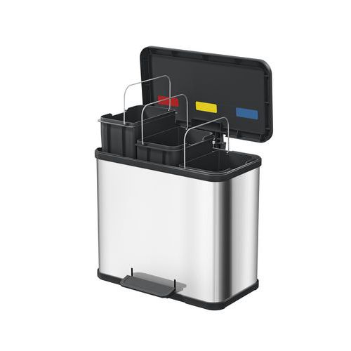 Metalowy kosz na śmieci Hailo Trio na odpady segregowane, pojemność 3 x 9 l, stal nierdzewna