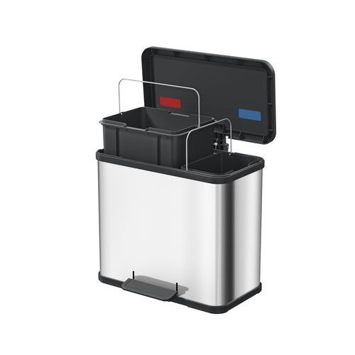 Metalowy kosz na śmieci Hailo Duo na odpady segregowane, pojemność 17 + 9 l, stal nierdzewna