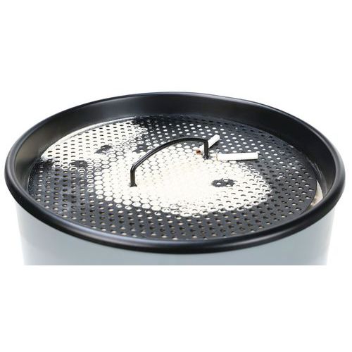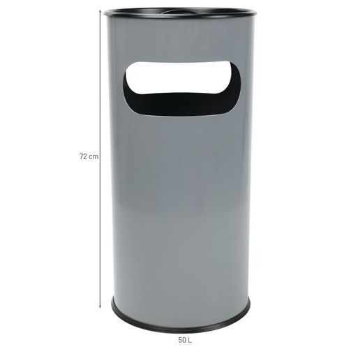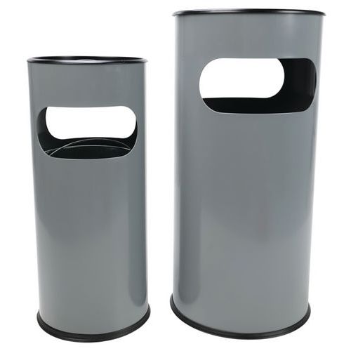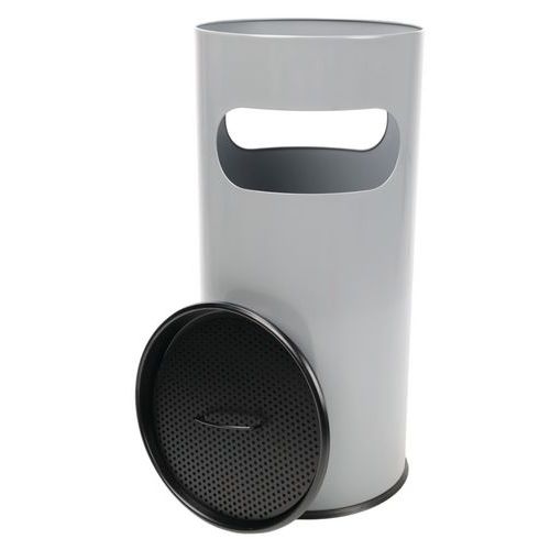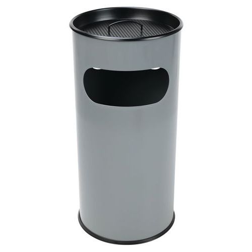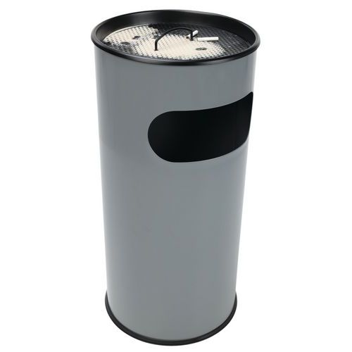 Okrągły kosz ognioodporny na odpadki z popielniczką. Metalowy wkład z uchwytem do łatwego opróżniania popielniczki. Otwór boczny do wrzucania odpadów. Nadaje się do umieszczania w zadaszonych obszarach zewnętrznych.