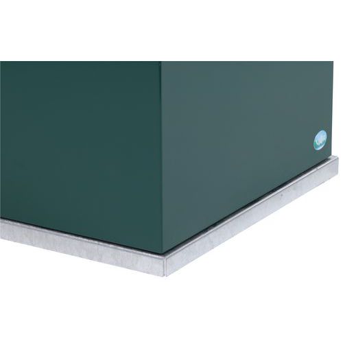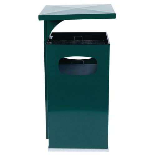 Zewnętrzne kosze na śmieci ze stali ocynkowanej, z popielniczką, w większej ilości wariantów kolorystycznych. Popielniczka z wkładką ze stali ocynkowanej, galwanizowana powierzchnia na niedopałki papierosów. Popielniczkę chroni daszek zabezpieczający przed deszczem. Zawiera pojemnik wewnętrzny ze stali ocynkowanej, wyposażony w uchwyt. Pokryta farbą epoksydową odporną na promieniowanie UV, co zapewnia stałość barw. Zamykana na klucz.
