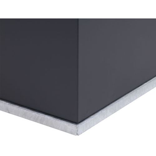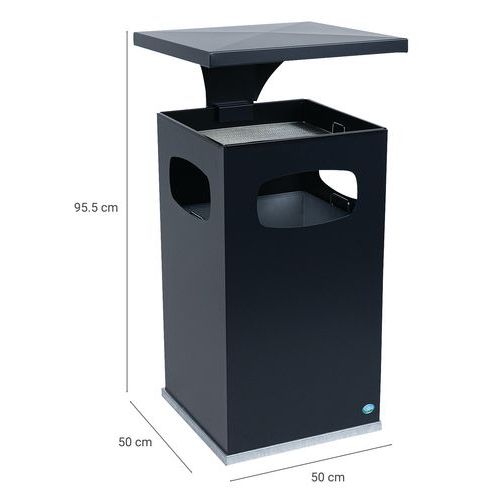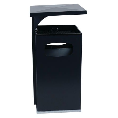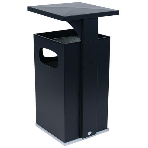 Zewnętrzne kosze na śmieci ze stali ocynkowanej, z popielniczką, w większej ilości wariantów kolorystycznych. Popielniczka z wkładką ze stali ocynkowanej, galwanizowana powierzchnia na niedopałki papierosów. Popielniczkę chroni daszek zabezpieczający przed deszczem. Zawiera pojemnik wewnętrzny ze stali ocynkowanej, wyposażony w uchwyt. Pokryta farbą epoksydową odporną na promieniowanie UV, co zapewnia stałość barw. Zamykana na klucz.