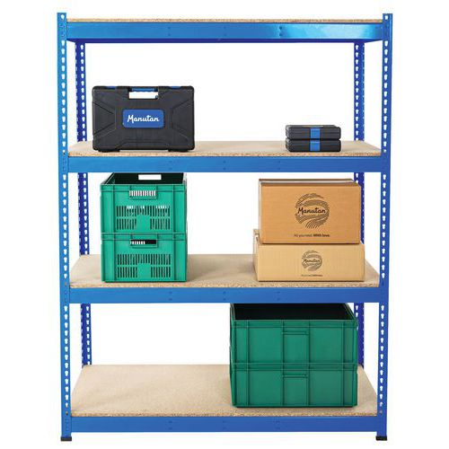 Regał metalowy Rapid 1, 198 × 152,5 × 91,5 cm, 340 kg/półkę, 4 półki z płyty wiórowej, niebieski Regał metalowy Rapid 1, 198 × 152,5 × 91,5 cm, 340 kg/półkę, 4 półki z płyty wiórowej, niebieski