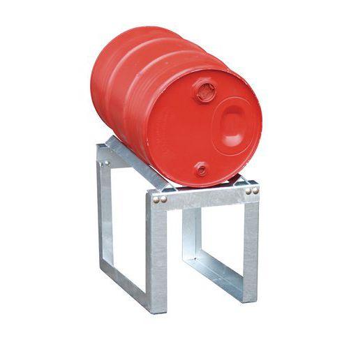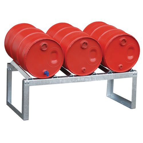 - Regał metalowy do przechowywania 60-litrowych beczek w pozycji poziomej.