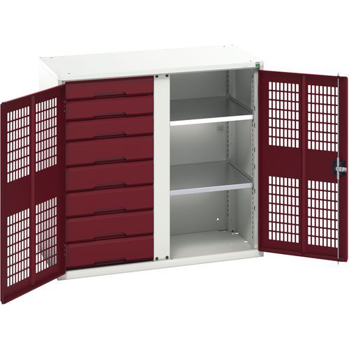Metalowa szafka konserwacyjna Bott Verso, drzwiczki druciane, 100 x 105 x 55 cm, 2 półki, 8 szuflad Metalowa szafka konserwacyjna Bott Verso, drzwiczki druciane, 100 x 105 x 55 cm, 2 półki, 8 szuflad