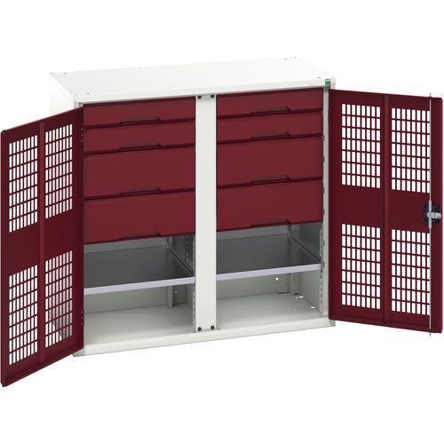 Metalowa szafka konserwacyjna Bott Verso, drzwiczki druciane, 100 x 105 x 55 cm, 2 półki, 8 szuflad Metalowa szafka konserwacyjna Bott Verso, drzwiczki druciane, 100 x 105 x 55 cm, 2 półki, 8 szuflad