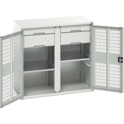 Metalowa szafka konserwacyjna Bott Verso, drzwiczki druciane, 100 x 105 x 55 cm, 2 półki, 4 szuflady Metalowa szafka konserwacyjna Bott Verso, drzwiczki druciane, 100 x 105 x 55 cm, 2 półki, 4 szuflady