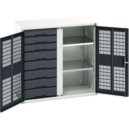 Metalowa szafka konserwacyjna Bott Verso, drzwiczki druciane, 100 x 105 x 55 cm, 2 półki, 8 szuflad Metalowa szafka konserwacyjna Bott Verso, drzwiczki druciane, 100 x 105 x 55 cm, 2 półki, 8 szuflad